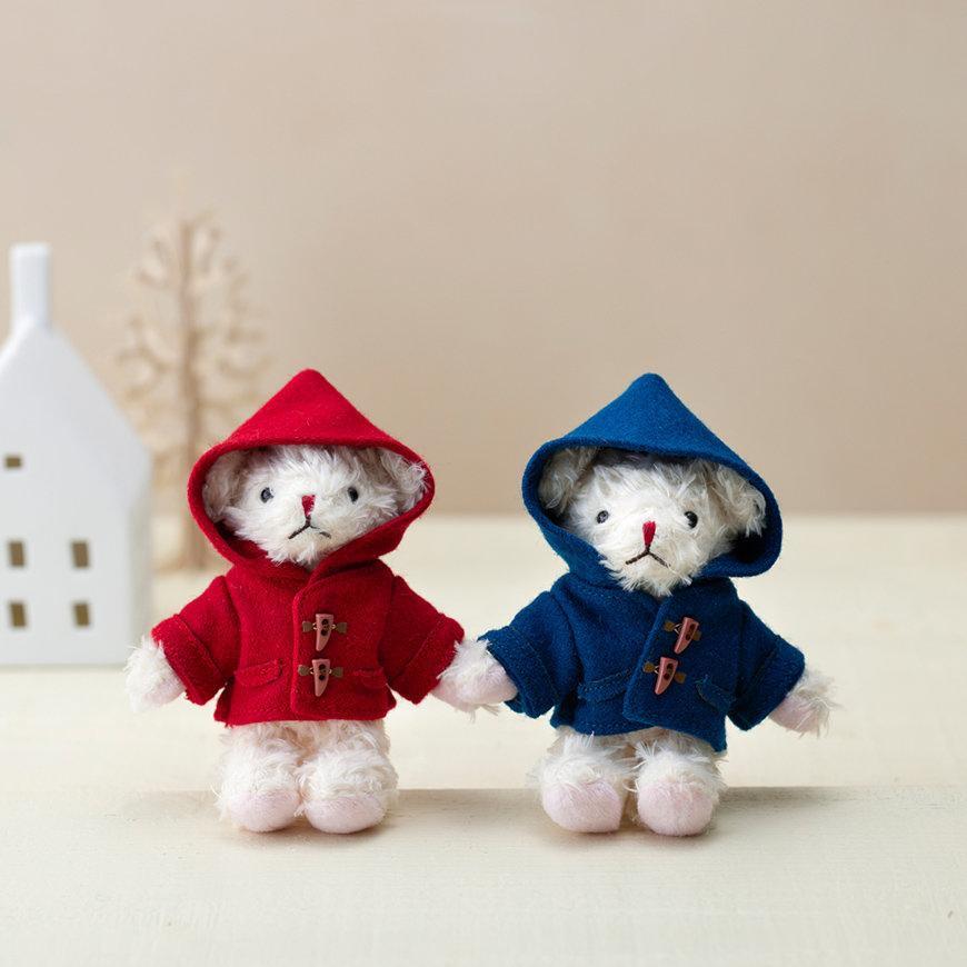 「ベアフル ダッフルコート (レッド/ブルー)」は、ダッフルコートを着た白いベアフルです。レッドとブルーの2体のベアフルが展開されています。