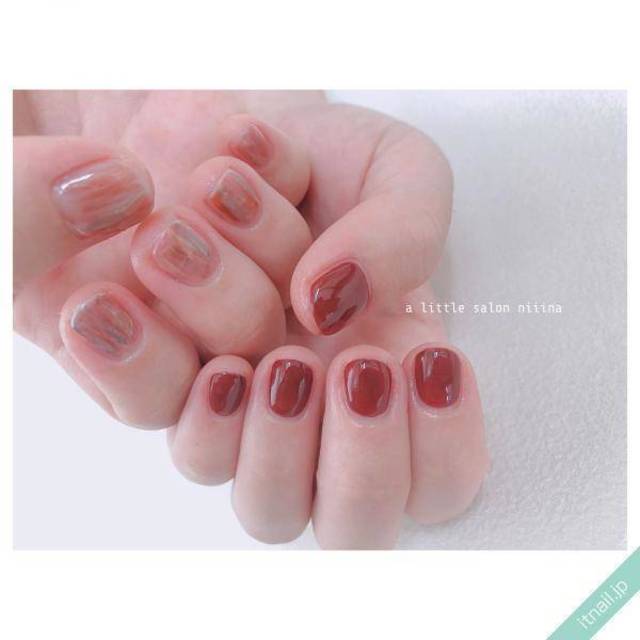 暖色系ベース×1本だけ指輪風ネイル