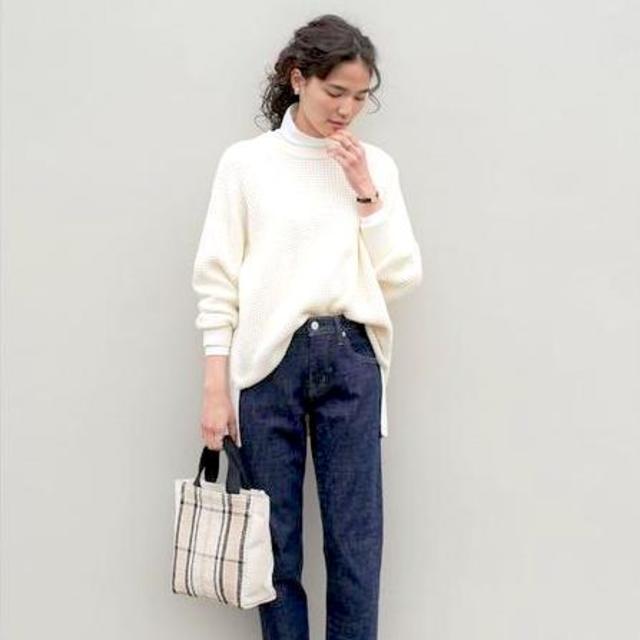 コート¥74,800(ル フィル/LE PHIL NEWoMan 新宿店)ニット¥42,900(ベイジュ,エクリュ/オンワード樫山 お客様相談室)シャツ¥31,900(スタンブリー/ヒューエルミュージアム ギンザシックス)パンツ¥14,400(バナナ・リパブリック)バッグ¥38,500(ヴァジック/ヴァジックジャパン)ブーツ¥47,300(ピッピシック/ベイジュ)ストール¥39,600(fuladd/アドーア 六本木ヒルズ店)※店舗限定