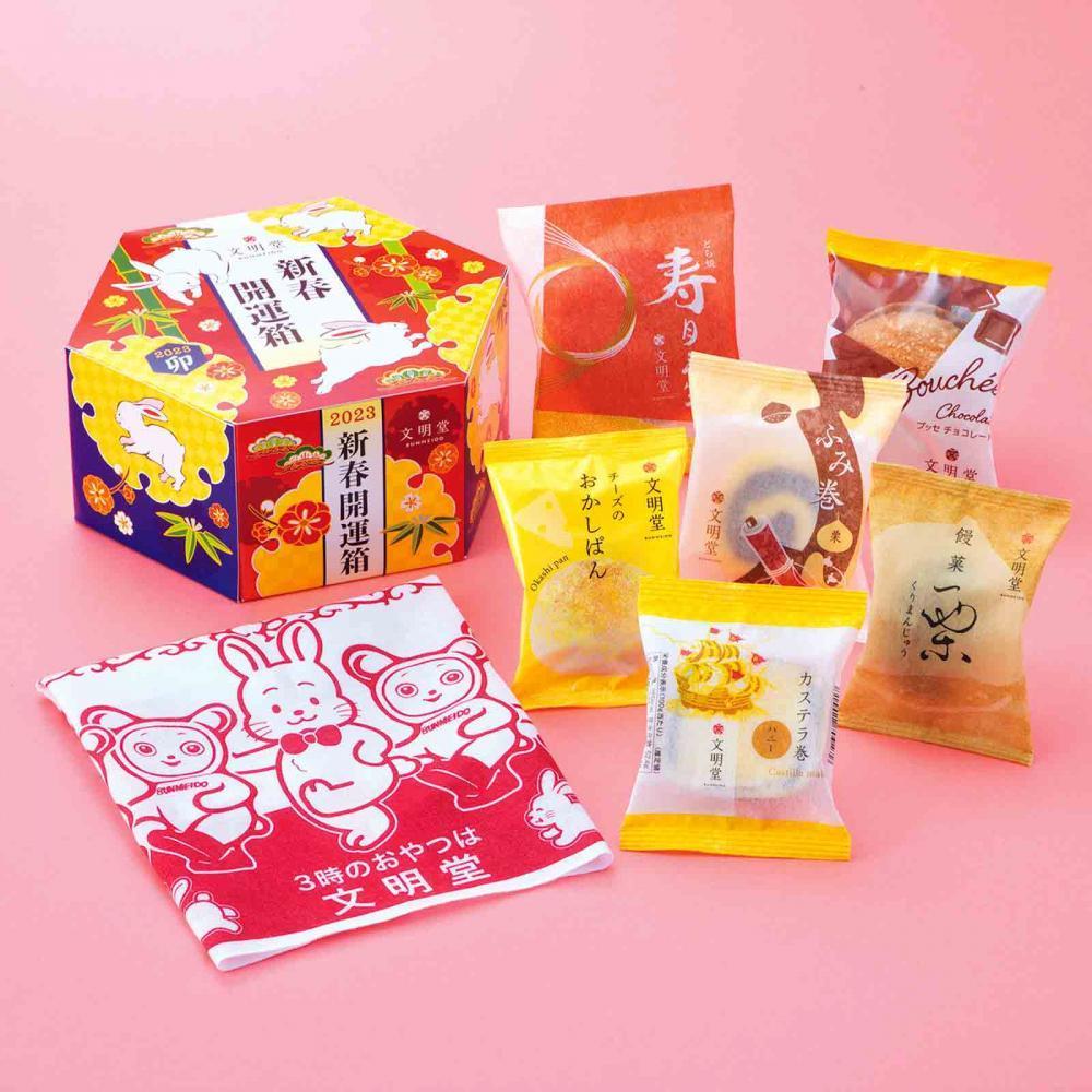 カステラの老舗「文明堂」では、2022年12月14日現在、「新春開運箱」を販売しています。