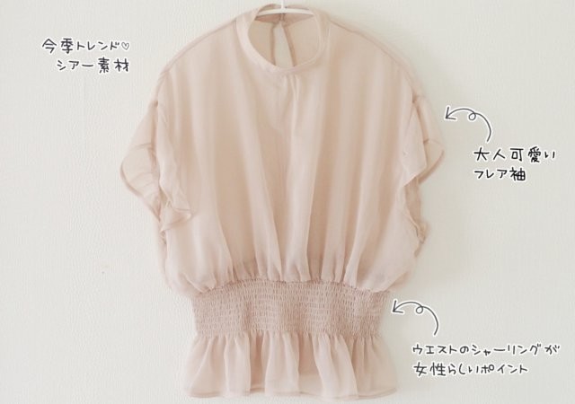 しまむらセールで900円だったというピンクスカンツ。春らしくフェミニンなカジュアルスタイルです。