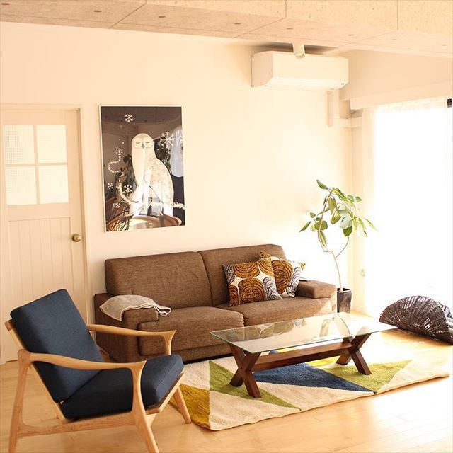 こちらはレトロ感がある一人暮らしインテリアで、観葉植物が差し色になっていますね。