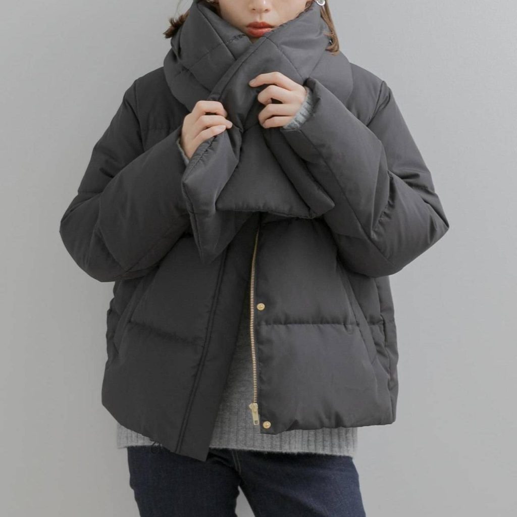 最後にご紹介する2022年冬におすすめのアウターは、マフラーがセットになったお得なダウンコート♪