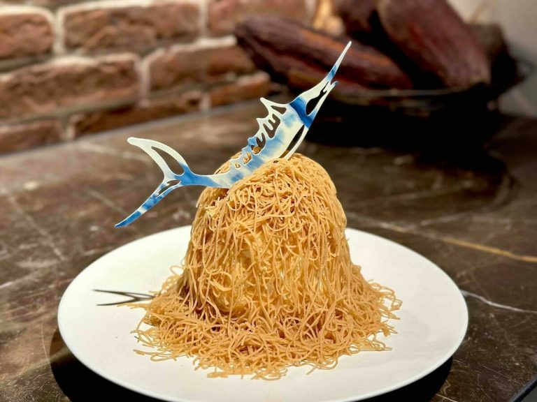 香り豊かな沖縄県産ジャスミン、高品質なフランス産ラベンダーを中心に、6種のスパイスを重ね合わせたという「シルク」。なめらかなでクリーミーな口当たりは、カップへの注ぎ方にも秘密があるよう。高い位置から勢いよくミルクを注ぎ入れることで、きめ細やかな泡を立たせていました。