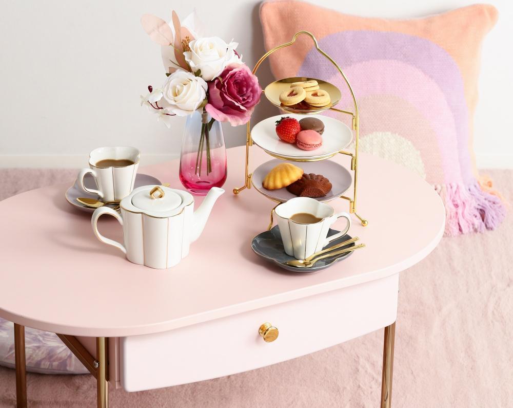 おうちカフェができる豪華なセットです。台紙付きなので、トレーに敷くだけで同じカップでもそれぞれ違った雰囲気を楽しむことができます。