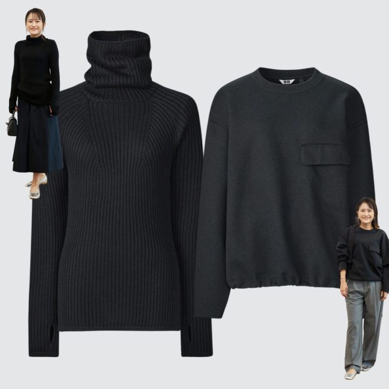 黒×ゴールドで洗練された印象のコーデです。プリーツスカートを差し色に、他は黒でまとめるとゴールドが引き立ちメリハリを出せます。黒コーデはキメすぎず、小物で“抜け”を作りましょう。