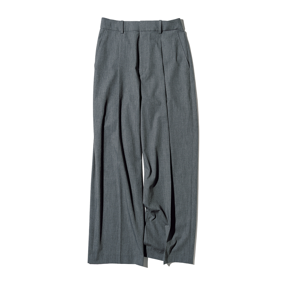 ケープコートにこれまでなら黒スキニーパンツを合わせていたところをワイドタックパンツに替えて、下半身重めのシルエットにするだけで更新感。