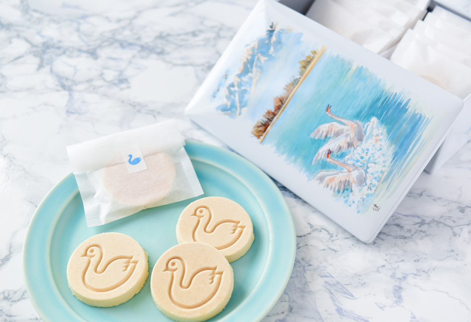 包み紙から取り出すと、白鳥の型押しがされた乳白色のソフトクッキーに心ときめきます。ほお張ると簡単にほろっと崩れ、落雁に似た繊細な口当たり。シナモンのやさしい甘味と香りで満たされ、どこか懐かしいその味わいにほっこり心が和みます。