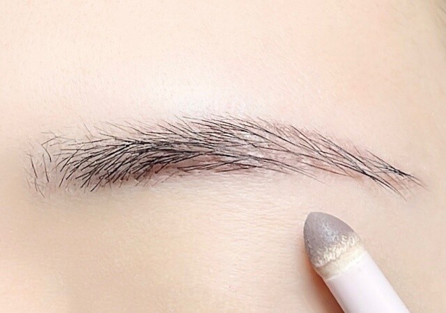 EYE アイホールと下まぶたに1aをなじませたら、上下のキワを繋ぐように目尻部分に1bを。最後に眉下中央に1cを入れて、まぶたのくすみを飛ばす。CHEEK 目頭の下から頬骨をなぞるように、横長に2を入れる。LIP 3を唇に直塗りしたら、上唇の山部分だけ指でトントンとなじませ、輪郭を軽くぼかす。