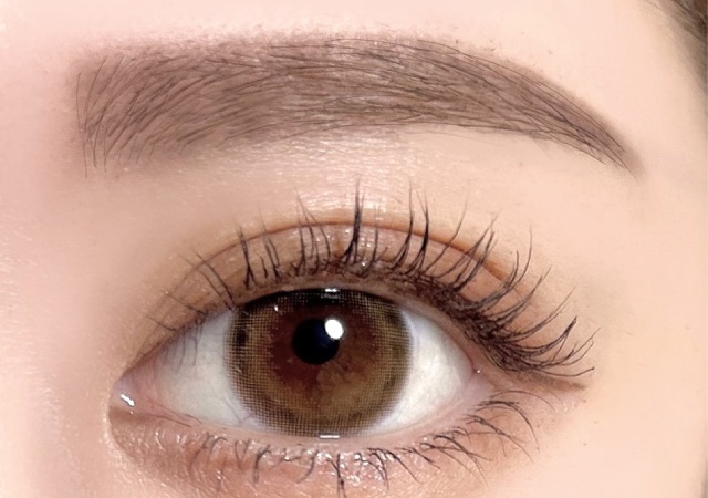 「ブラウンのグラデーションで上まぶたを重厚に仕上げたら、下まぶたはラメの質感だけを感じるヌーディな仕上がりに。ブラウン〜オレンジのグラデーションで、コンサバになりすぎず、ほどよいカジュアル感のある瞳印象を叶えます」(イガリさん・以下同)