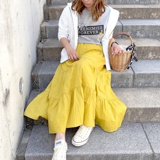 存在感のあるボリュームシルエットが華やかな印象のマキシスカート。女性らしいたっぷりのギャザーが春の訪れを感じさせます。張りのある布帛生地を使用しているので、コットン素材でも上品な印象で着用できます。