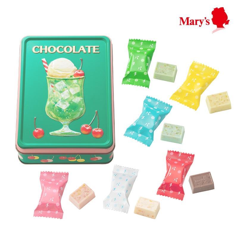 「アソートメント缶」は、メロンクリームソーダやいちごソーダなど、6種類すべてのはじけるキャンディインチョコレートがレトロな缶にたっぷり入っています。チョコは21個入り。
