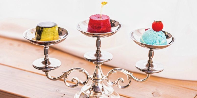 店名の由来にもなっている、オリジナルの三又台に乗せられたプリンが看板メニューのかわいいカフェ。カスタード、チョコなど定番プリンに加え、苺ゼリーやパンプキンといった季節限定も人気です。