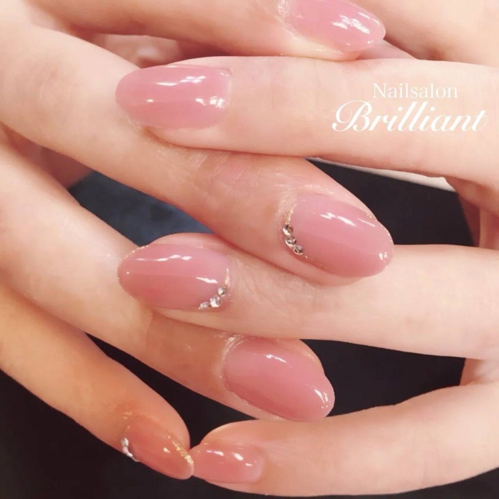 手元の肌と指先に一体感が生まれるスキンカラーのワンカラ―は、清潔感も備えた指が長く見えるネイルデザインです。