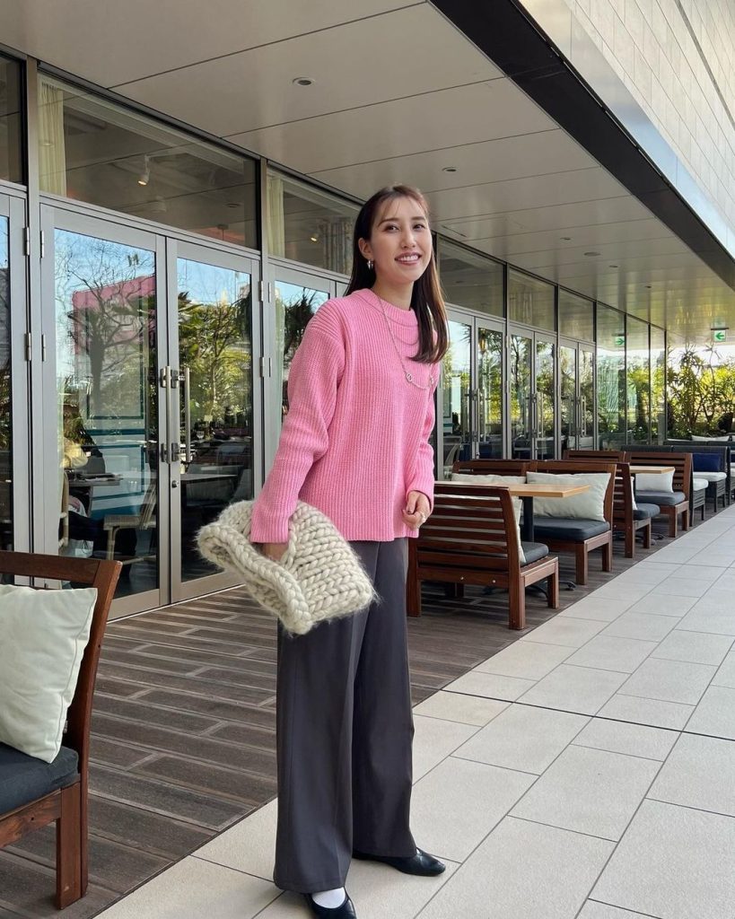ふんわり冬心地のニットは春色でキュン