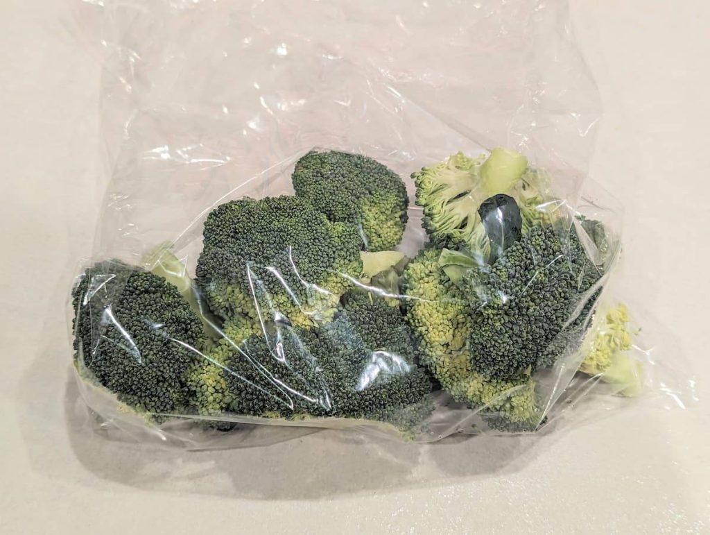 小房に分けたブロッコリーをポリ袋に入れます。ポリ袋はなんでも大丈夫ですが、穴が空きにくいなるべく丈夫なものが良いです。