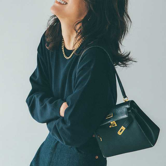 小物もニットに合わせて黒をセレクトして、メリハリをきかせるのがポイント。