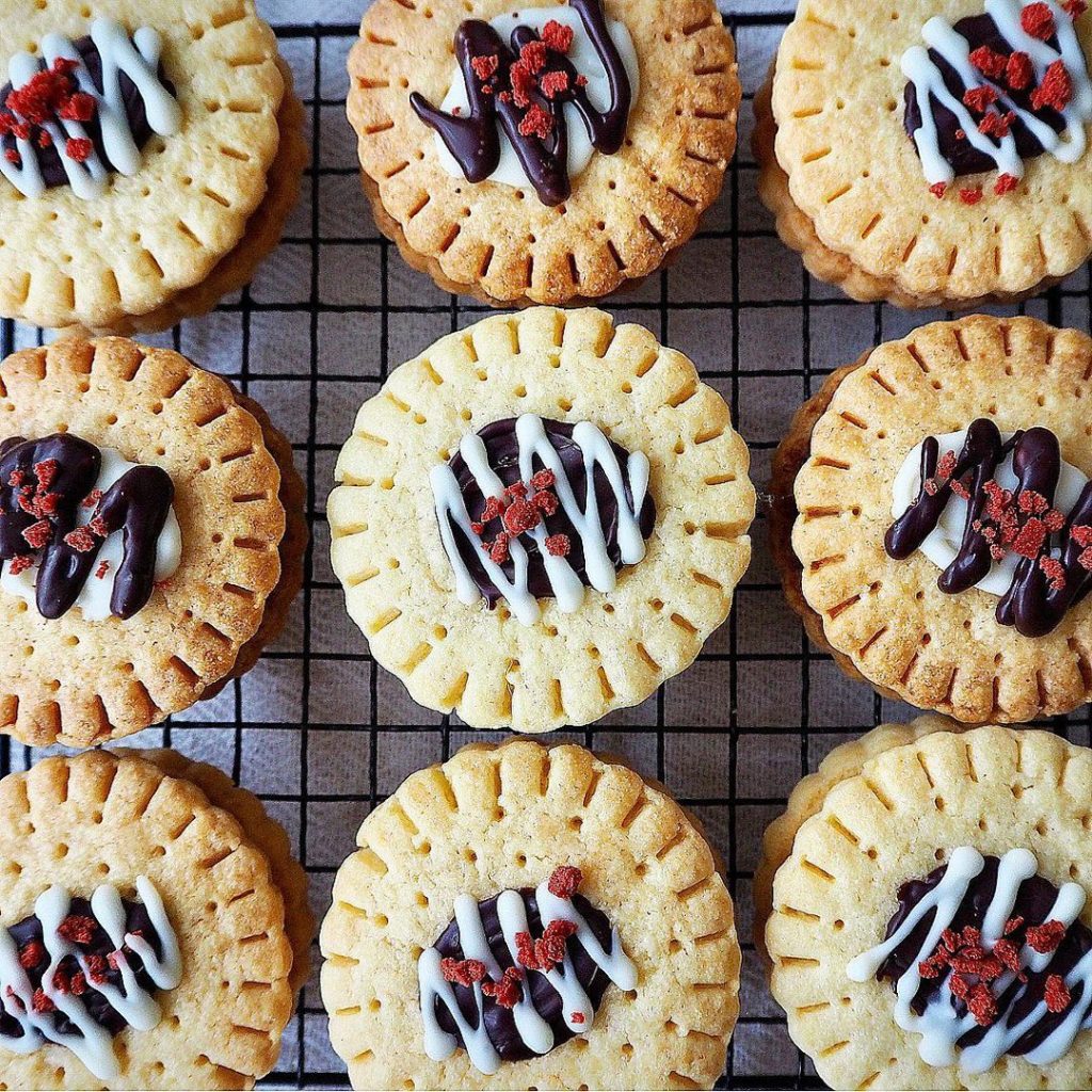 かわいくトッピングされたクッキーには、生チョコをサンドしています。クッキーのサクッとした食感と生チョコのとろける口溶けの、どちらも味わえる贅沢スイーツ。ちなみにクッキー型は、100均のダイソーで購入したものだそうです。