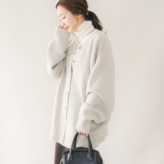 少し短めの着丈とややゆったりめの身幅は気になるラインは拾わずに自然とスタイルをよく見せてくれる♡なめらかでクリーンな風合いのジャガード織カーディガンです。
