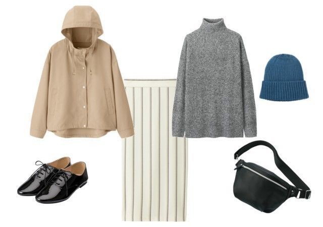 全体の半分を占めるボトムスにホワイトを投入することで、全体の印象も明るくなり“冬感”が出過ぎず、春先にちょうどよいカラーバランスに。