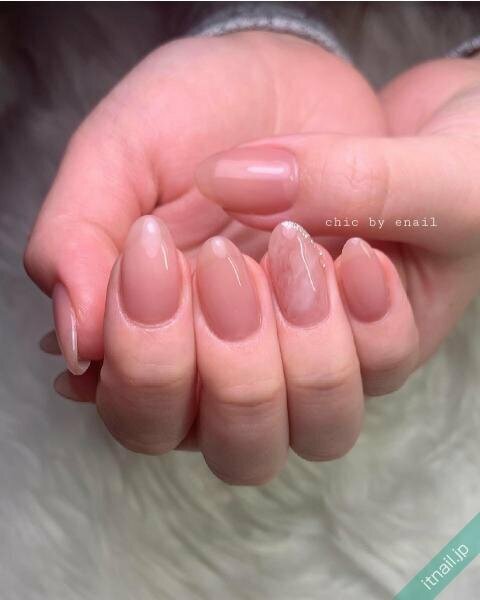 晩冬は、あえて淡いカラーネイルにすることで手元に抜け感がプラス♪