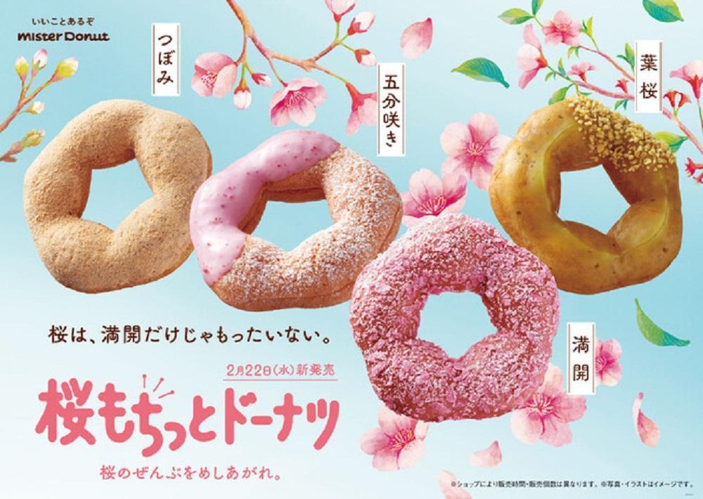 ミスタードーナツ各店では2023年2月22日から、"桜のうつろい"をイメージした「桜もちっとドーナツ」全4種が期間限定で販売されます(一部ショップを除く)。