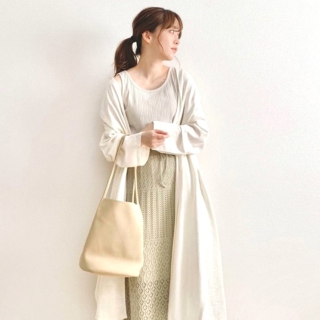 カーキ×ホワイトのアースカラーも落ち着いた雰囲気で、ハイセンスが際立つスタイリングです。