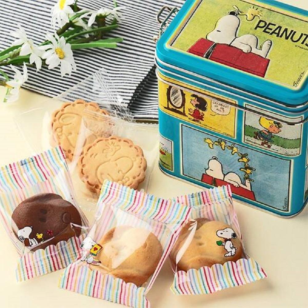スヌーピーデザインがかわいいクリアコンテナの中には、スヌーピー型焼菓子2個、スヌーピー柄焼菓子1個と、計3枚のクッキーが入っています。お菓子を食べたあとは小物入れにもできますよ。