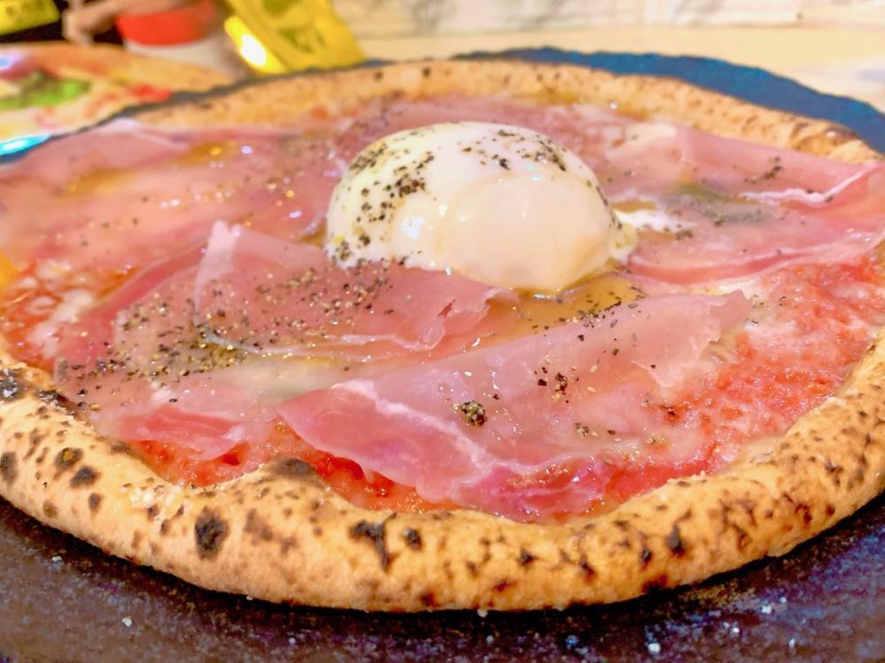 温泉卵のまろやかな味、コショウのピリッと感、生ハムの程よい塩気によって、元のトマトソースやチーズの味わいがより引き立つように感じます。