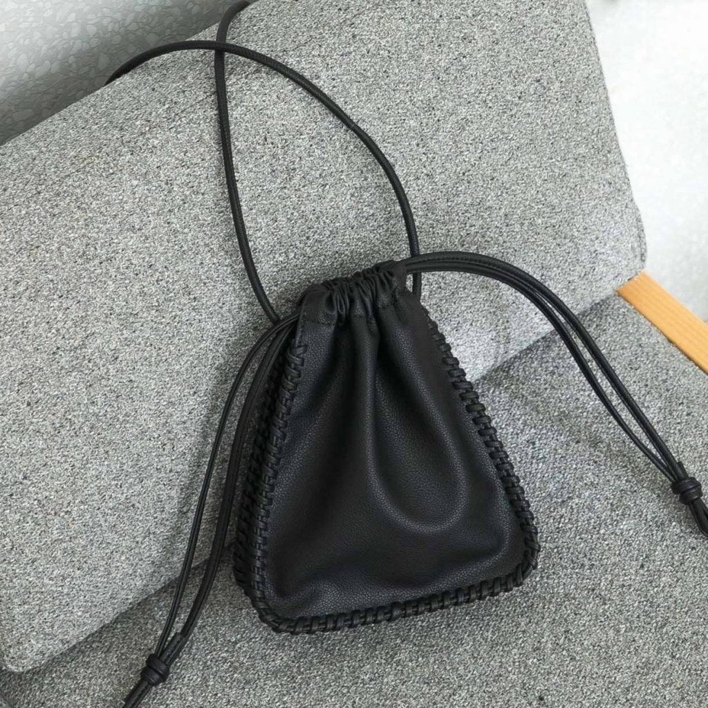 最初にご紹介するおすすめの三角型の黒バッグは、巾着型のショルダーバッグです。