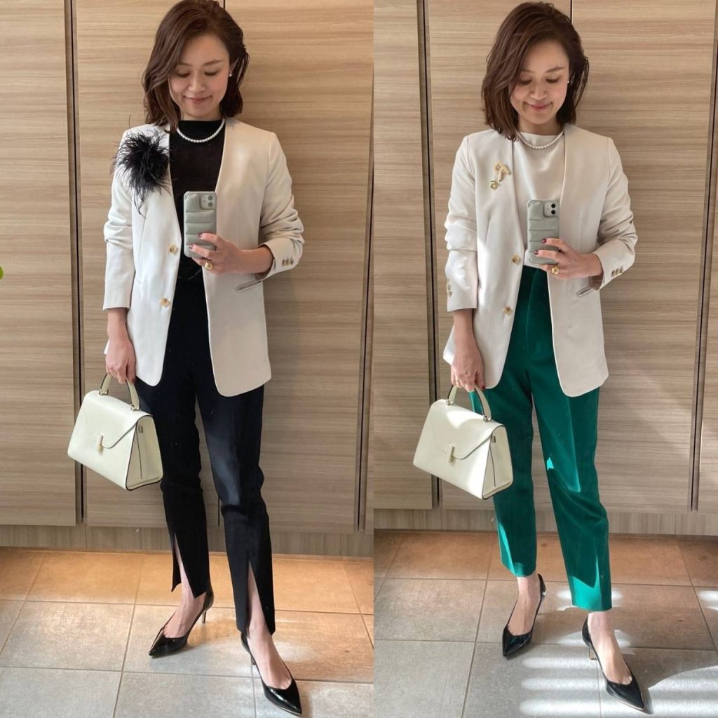ここでは黒のブラウスとホワイト系のジャケットを購入することをオススメします!
