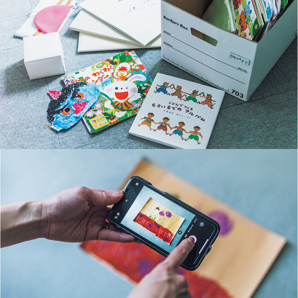 残さない作品は、ママのスマホで撮影してデータで保存。家族とはアプリ「みてね」で共有!