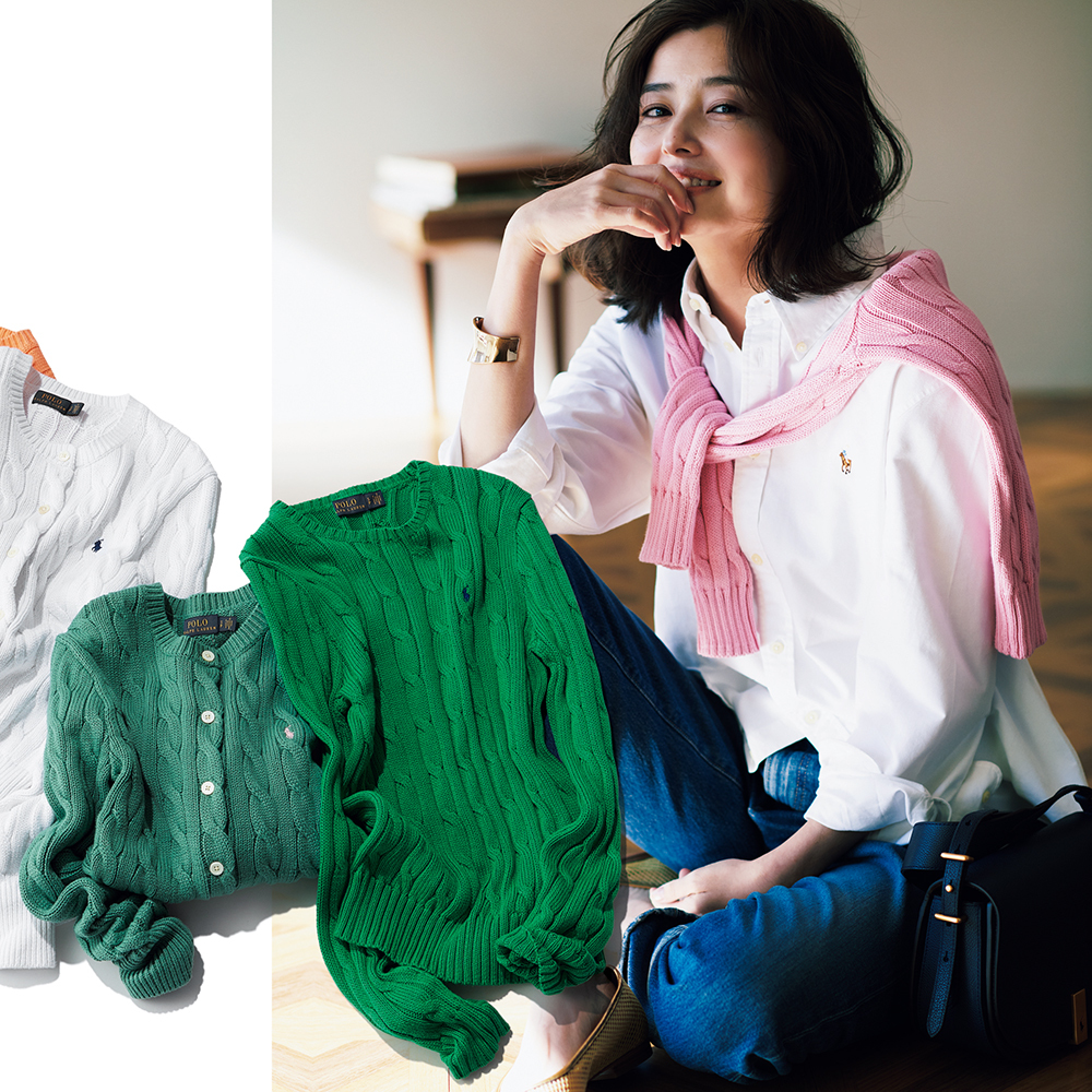 ブランドの代名詞、ケーブルニット。ラルフ ローレンの伝統が受け継がれた立体的な編み模様は、着こなしに正統派な雰囲気を醸し出します。定番カラーに加えて、春らしいフレッシュなキレイ色もシーズナルカラーとして登場。ピタッとフィットするコンパクトなサイズ感が女っぽくて新鮮です。特にカーディガンは、コーデのワンポイントに肩掛けしたりとアレンジ力も◎。シグネチャーのポロプレイヤーロゴの配色もそれぞれに絶妙で、タイムレスに愛せる一着です。