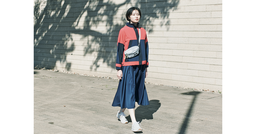 ワンピースコート¥57, 2 0 0/ D E A R DA NS KI N(ゴールド ウイン カスタマーサービスセ ンター)、サコッシュ¥3,19 0/ L.L.Bean(エル・エル・ビーン カ スタマーサービスセンター)、イ ヤカフ¥16, 50 0/PLUI E(プ リュイ トウキョウ)、スニーカー ¥10, 890/New Bal ance(エミ ニュウマン新宿店)