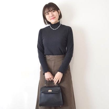 地味見えしないよう、アクセントになるような小物を一点投入するのもポイント。