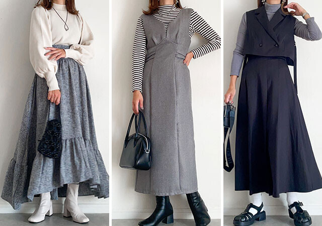 スッキリとした丈感なので、ロングスカートを合わせても重たい印象にならず、バランスの良いコーデに仕上がります。