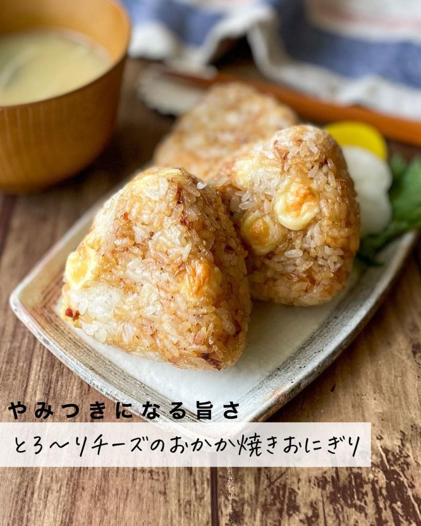 おかかはおにぎりの定番具材ですよね。そこにチーズを加えてコクも食べごたえもアップ。おかかとの相性もいいです。焼きおにぎりにすると香ばしくなり、ますますおいしくなりますよ。