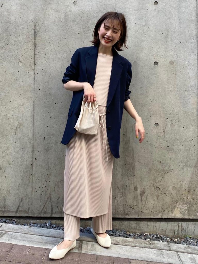 同じリネンブレンドのジャケットを合わせれば、きちんと感のあるセットアップコーデの完成。春夏のオフィスカジュアルにもベストマッチです。