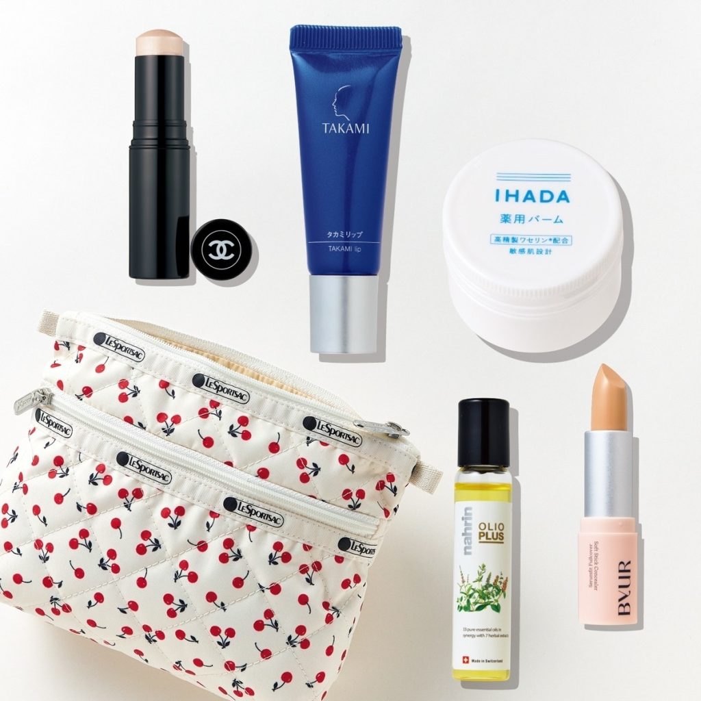 「アイシャドウやリップなどの色ものは毎日入れ替えますが、日々変わらずポーチインさせているのは、肌の土台を補正してくれるスキンケア&ベースメイクアイテム。どんなに目周りのヨレを直しても、全体の肌が整っていないと台無しに。だから、メイク直しでは潤いをプラスできる保湿ケアとパーツ別にカバーするコンシーラーで、肌鮮度をリセットするのがマイルール。さらに、メイク映えする唇を育てるためのリップクリームや、お守り的存在の喉スプレー、自分がリラックスするためのハーブオイルなどを常備。安心できるアイテムも忘れずに持ち歩いています」