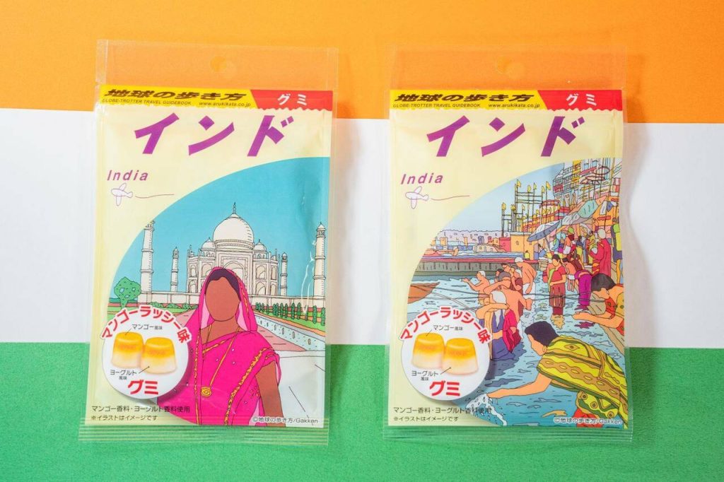 パッケージは2種類で、どちらも旅行ガイドブック「地球の歩き方 インド」の表紙イラストが使用されていますよ♪ ガイドブックそっくりなのがポイント!