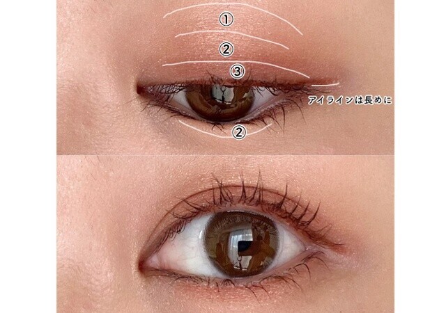 使いやすい血色ベージュのグラデーションに、左上のライラックがピュアさを演出。大人の表情に初々しさをプラスしてくれる。