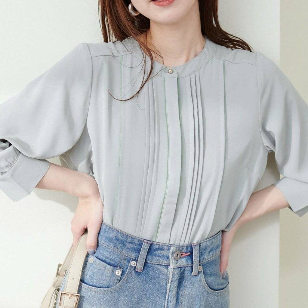 ラストにご紹介する2023年初夏におすすめしたい細く見えるブラウスは、ピンタックデザイン♪