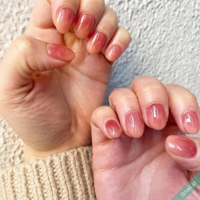透明感とちゅるんと感がたまらない、rom&nd (ロムアンド)のグラッシードロップネイル。RD01 ラズベリーは、一度塗りでほんのりピンク、重ねていくごとにこっくりピンクになりますよ。