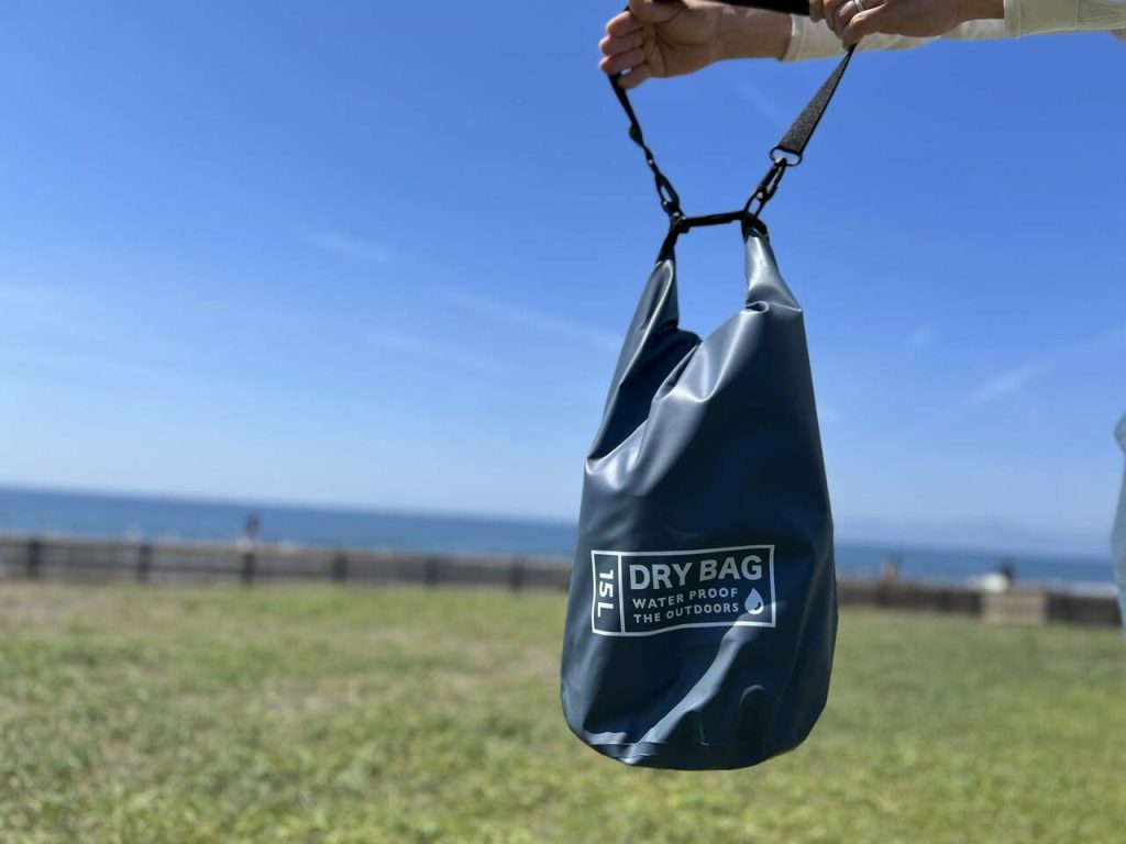 15Lの方はストラップ付で、肩から掛けたり、背負ったりできます。大容量でも安心。水から守るほか、帰りには水遊びして濡れたタオルや水着を入れることも可能です。ほかの荷物を湿らすことなく帰宅できます。