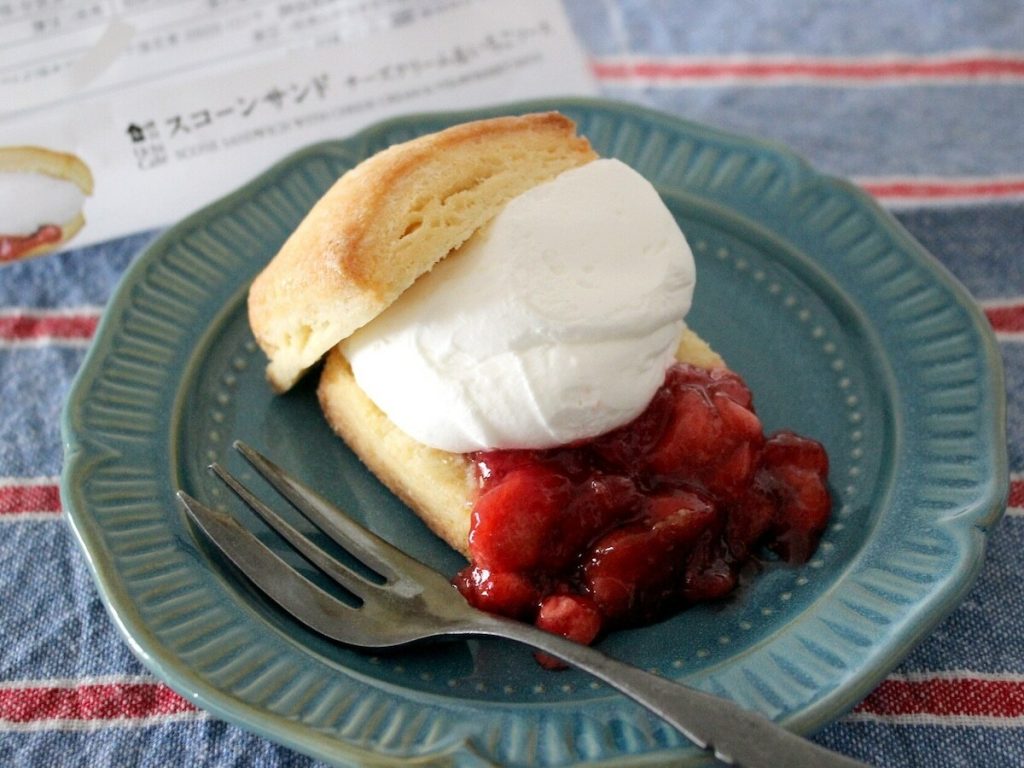 クリームはホイップクリームとも合わせているようで、軽くなめらかな口どけ。チーズの酸味はおだやかで、甘みとミルク感があって生クリームのよう。量もしっかりあるので、たっぷりとスコーンにのせて味わえます。