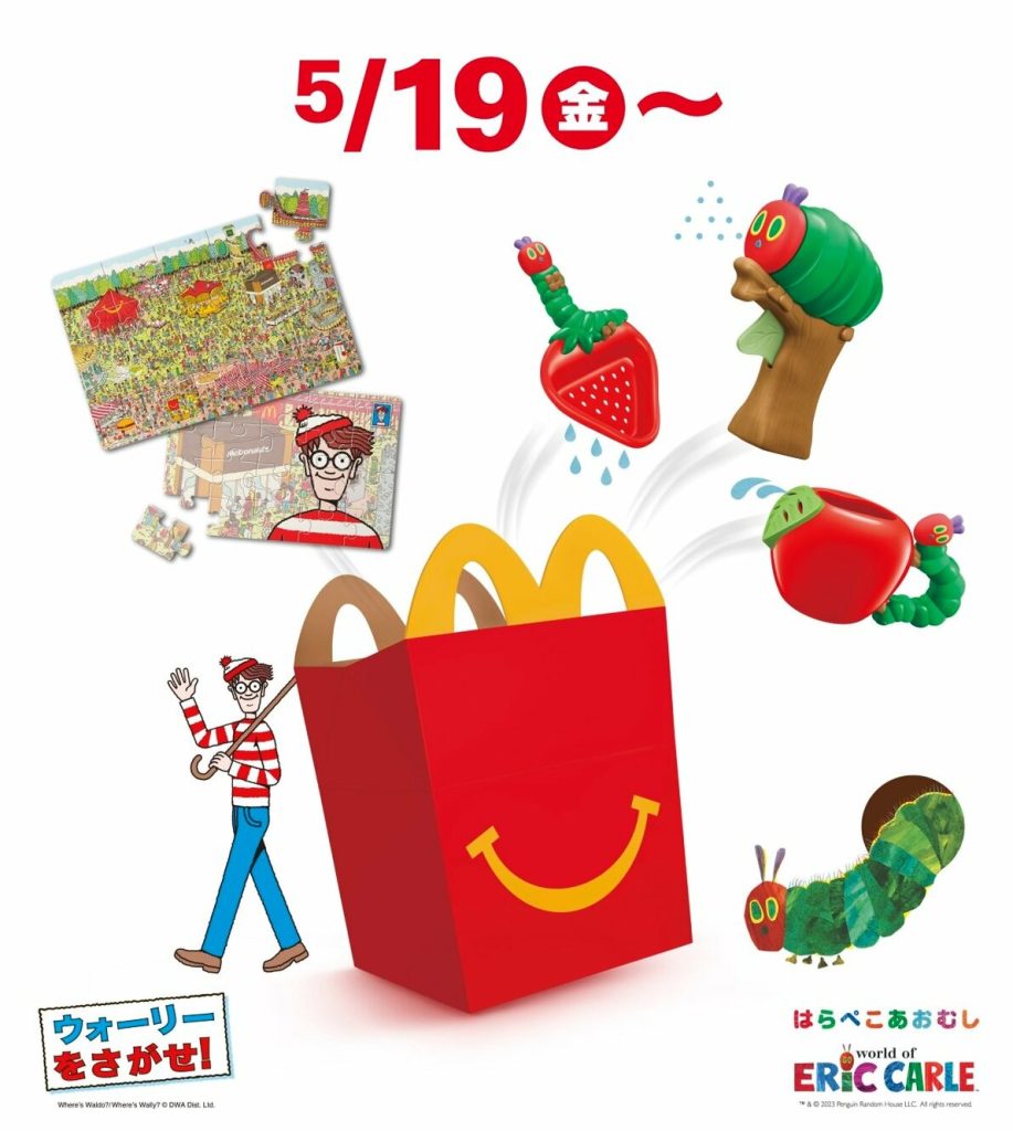 5月19日(金)からのハッピーセットは「ウォーリーをさがせ!」と「はらぺこあおむし」です。
