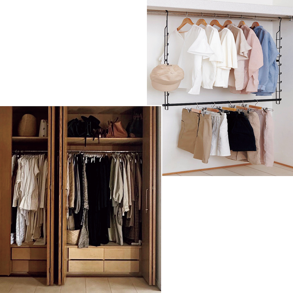 「スペースの有効活用はもちろん、上段にトップス/下段にボトムスを配置すると上下のイメージが瞬時に浮かびやすくコーディネートの時短になりました」