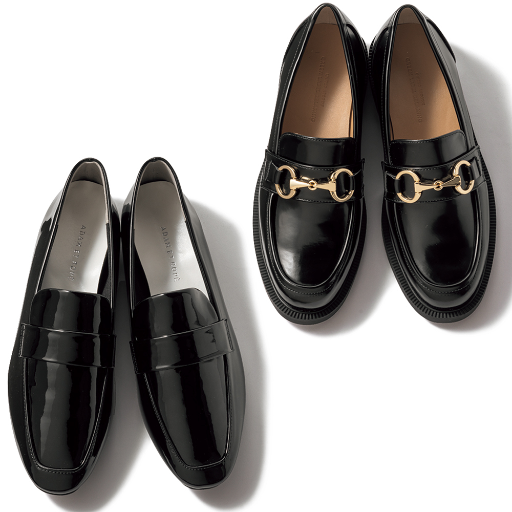 細身のシルエットとエナメル風の光沢できちんと感あり。