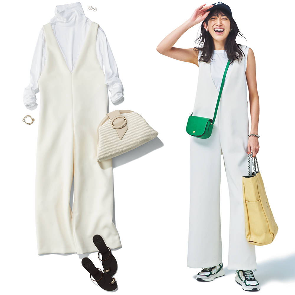 動きやすさも、ワンピ感覚のお出かけ感もある公園↔ランチの 「着回し力で選ぶなら、 なおさらサロペット」