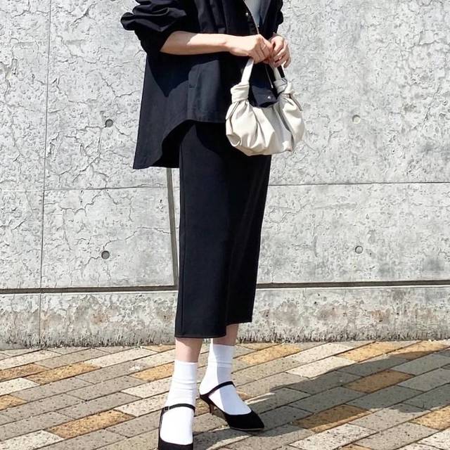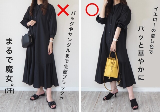 青みピンクは黒と合わせてモードに